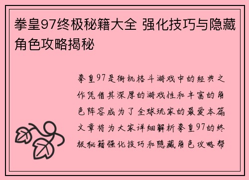 文章摘要:奶骑(圣骑士)作为《魔兽世界》中的一名经典职业,既可以担任坦克角色,也能承担强大的辅助输出责任,尤其在团队战斗中展现了其独特的多功能性。本文将从四个方面详细解析奶骑技能和搭配技巧,帮助玩家打造最强的辅助输出组合。首先,我们将介绍奶骑的基本技能解析,着重分析其核心技能及其在战斗中的作用;接着...